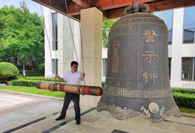 活动最后,全体人员来到廉政文化广场,汪小云庄重地敲响廉政警钟,再次警示和教育全体党员干部不忘初心、牢记使命,以案为鉴、自警自醒。